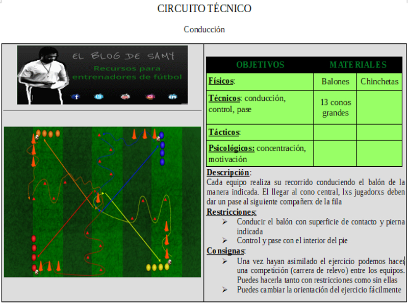 Se trata de un CIRCUITO DE CONDUCCIÓN , muy simple, con el que podrás sacar todo el jugo a la conducción de balón con todas las superficies de contacto.