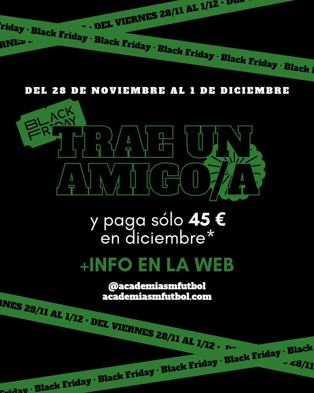 Este año queremos celebrar el Black Friday con una promoción especial pensada para que más niños y niñas puedan disfrutar del fútbol formativo, de un entorno seguro y de una metodología de trabajo que apuesta por el desarrollo real de cada jugador.